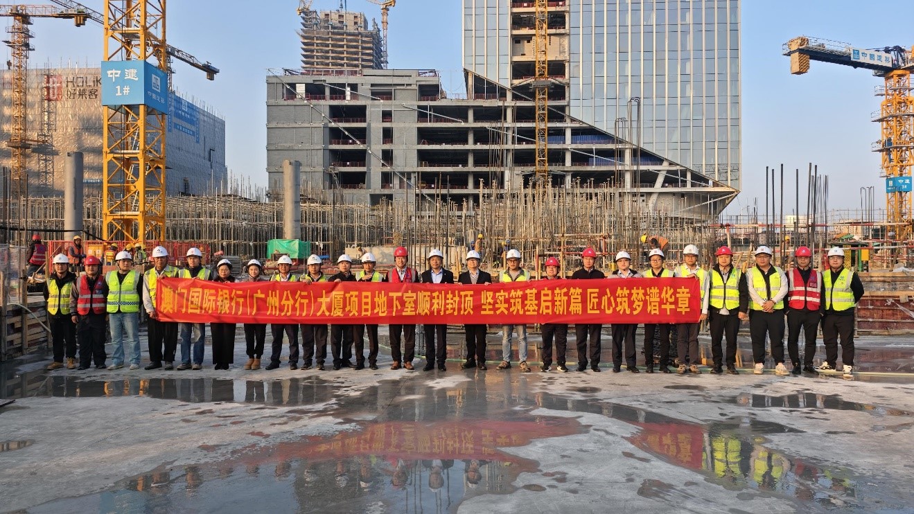 2026年1月6日,澳门国际银行(广州分行)大厦项目提前完成了±0节点封顶,地下基础施工顺利结束,工程正式转入地上主体结构施工,为整体推进奠定了坚实基础。