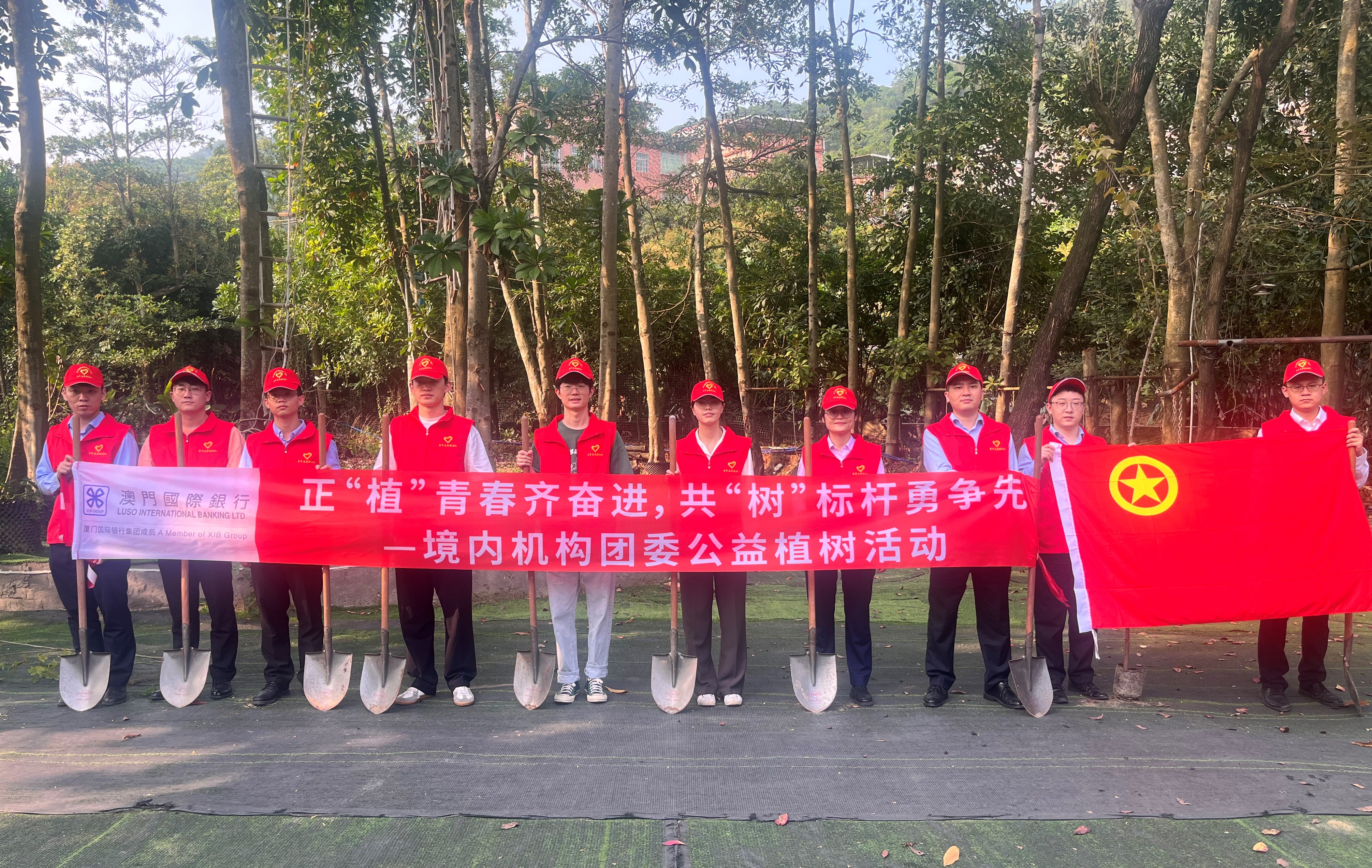 春回大地四月天,植樹添綠正當時。為貫徹落實習近平生態文明思想,致敬“五四”青年節,大力號召青年員工奮勇爭先,爭做時代先鋒,凝聚青春合力。4月17日下午,澳門國際銀行(以下簡稱“我行”)境內機構團委組織開展“正‘植’青春齊奮進,共‘樹’標杆勇爭先”主題公益植樹活動,以紅色青春點亮綠色山水。