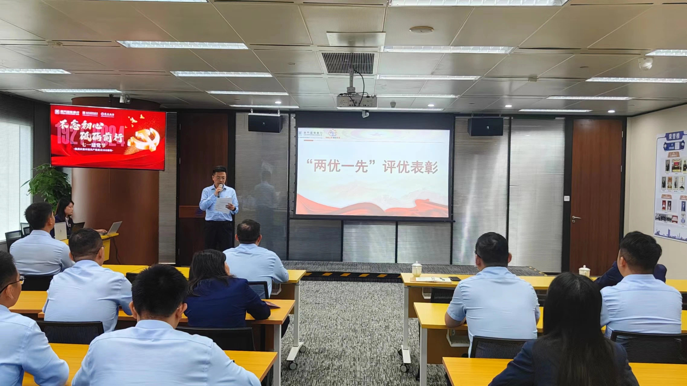 境內機構黨委開展“兩優一先”評優表彰,游雄軍同志宣讀《中共澳門國際銀行股份有限公司境內機構委員會關於表彰2021-2023年度優秀共產黨員、優秀黨務工作者和先進基層黨組織的決定》,其中,陳祥華、董子、馮澤威、閉通才四位同志獲得上級黨委優秀共產黨員榮譽稱號,孫廣利同志獲得上級黨委優秀黨務工作者榮譽稱號,廣州分行第三黨支部獲得上級黨委先進基層黨組織榮譽稱號,並在廈門接受上級黨委表彰,勉勵優秀個人和先進集體進一步發揮好基層黨組織戰鬥堡壘作用和黨員先鋒模範作用,為銀行高品質發展作出更大貢獻。