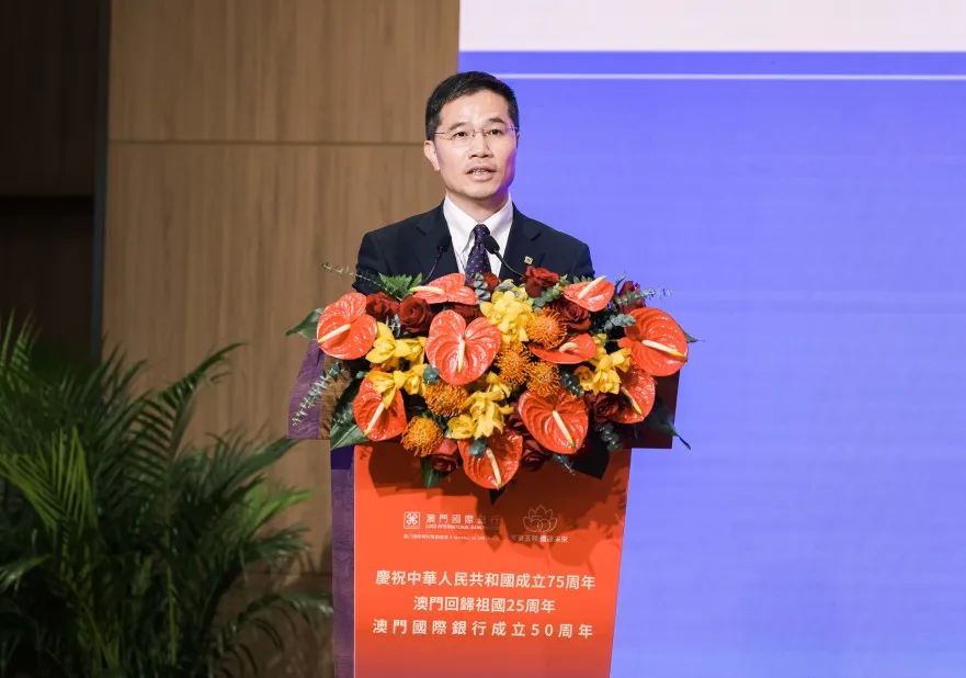 中聯辦呂玉印副主任致辭表示,澳門國際銀行成立五十年來,堅定服務國家、澳門所需,參與中國首家中外合資銀行的籌建工作,爲澳門居民及企業提供優質便捷的金融服務。特別是澳門特區政府成立後,澳門國際銀行始終支持特區政府依法施政,爲澳門經濟社會發展建言獻策;始終致力於推動澳門與內地經濟金融合作,積極參與澳門債券市場建設,努力搭建兩地合作交流橋樑;始終履行社會責任,贏得特區政府高度肯定,以及社會各界的廣泛讚譽,爲澳門長期繁榮穩定作出貢獻。面向新時代、新征程,希望澳門國際銀行與同業一道,積極參與澳門經濟社會事務,成爲“一國兩制”事業的堅定擁護者和執行者;繼續深化與內地金融經濟合作,更加積極參與橫琴粵澳深度合作區建設,助力澳門更好地融入國家發展大局;充分發揮澳門“背靠祖國、聯通世界”的優勢,積極對接國家“一帶一路”等戰略,助力澳門更好地發揮橋樑紐帶作用,爲國家金融強國建設和深化對外開放探索路徑、積累經驗。